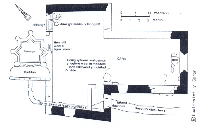 NODYN GOLYGYDDOL: Diolch i Emrys am ei waith yn casglu gwybodaeth am y ffynnon. Mae'n wir i ddweud ei bod yn weddol ddiogel o dan y pridd ond mor braf fuasai ei hadfer a gweld y dŵr yn byrlymu ynddi eto. Diwedd y gan yw'r geiniog ac mae'n ymddangos mai diffyg cyllid yw'r anhawster mwyaf sy' n wynebu unrhyw un sy' n ceisio adfer ffynnon. Gan nad oes arian i'w gael o Ewrop, hwyrach y dylid gofyn am gymorth gan fusnesau yma yng Nghymru. Yn aml mae ganddynt ddigon i'w sbario ar gyfer noddi amrywiol weithgareddau.